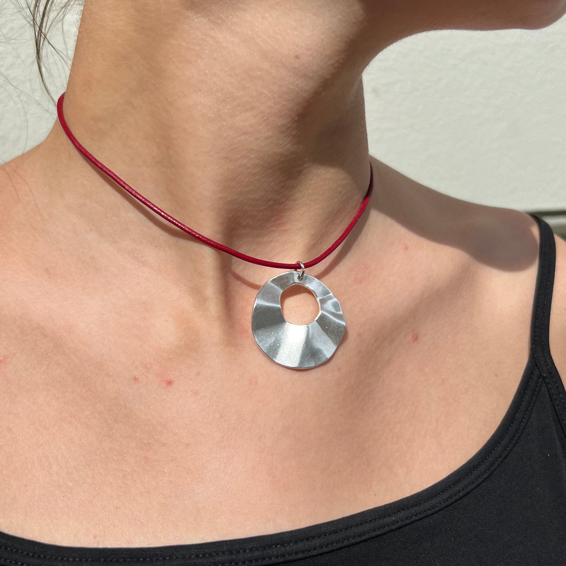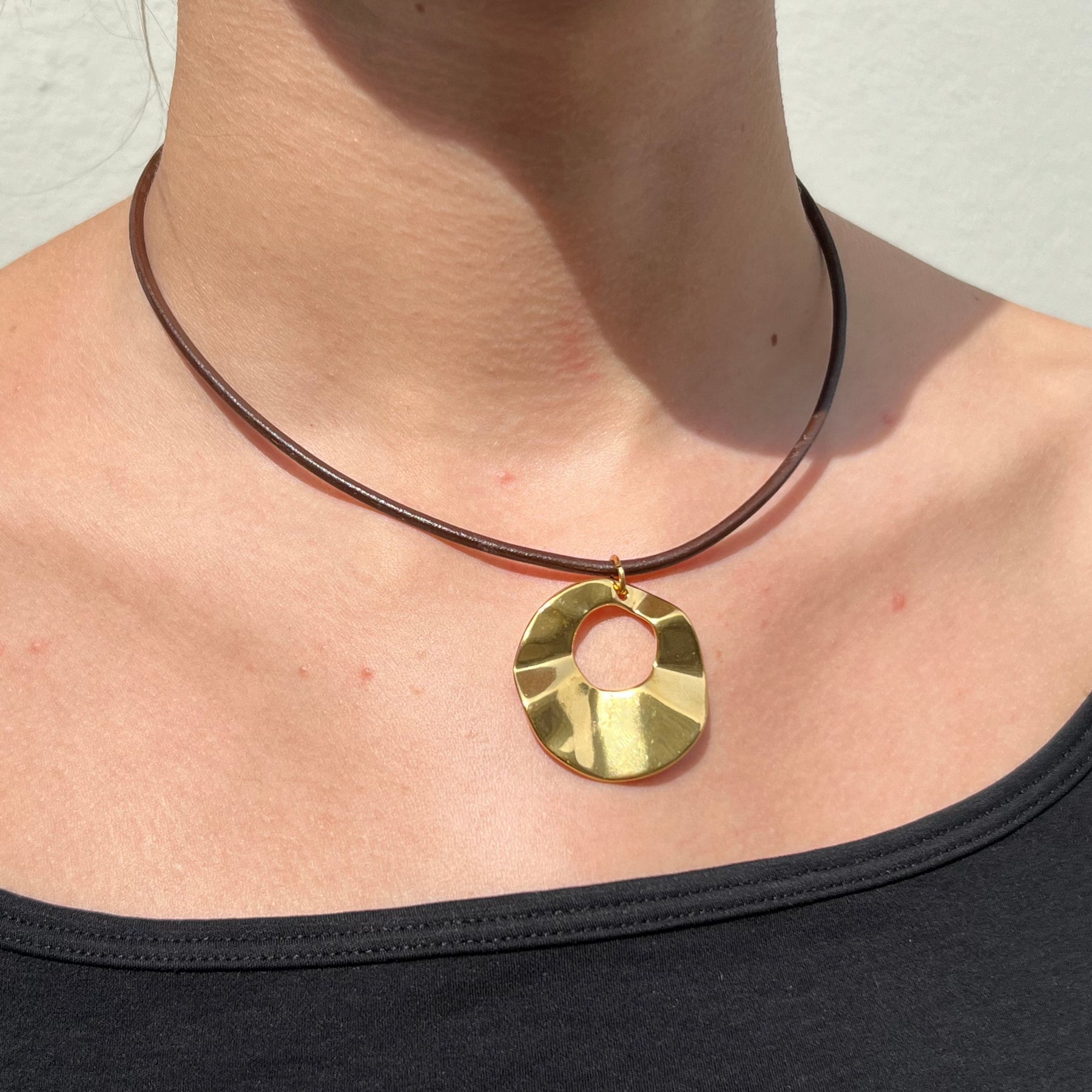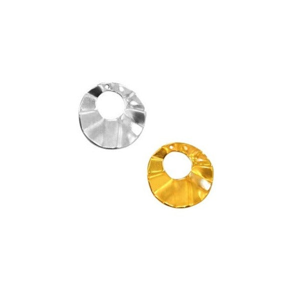 Schöner und eleganter runder, welliger Anhänger in Zamak, vergoldet mit 24 Karat Gold oder mit Sterlingsilber. Perfekt zum Anziehen einer Halskette oder in ein paar Reifen. Super trendy.