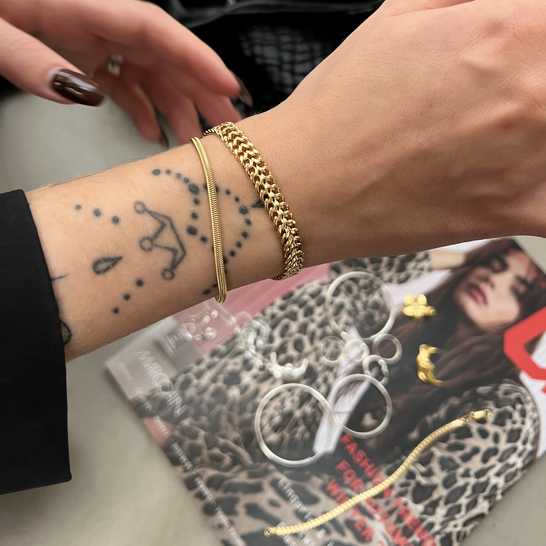 Klobiges, breites Armband aus Doppelpanzerfacettenkette in Messing, Beschichtet mit einer dicken Schicht von 18 Karat -zertifizierten Fairtrade Gold.