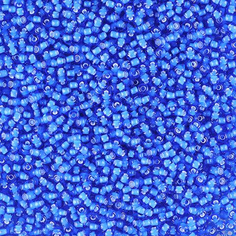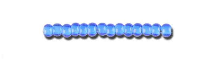 Transparente kleine Glasperlen in hellem Saphirblau mit weißem Futter.