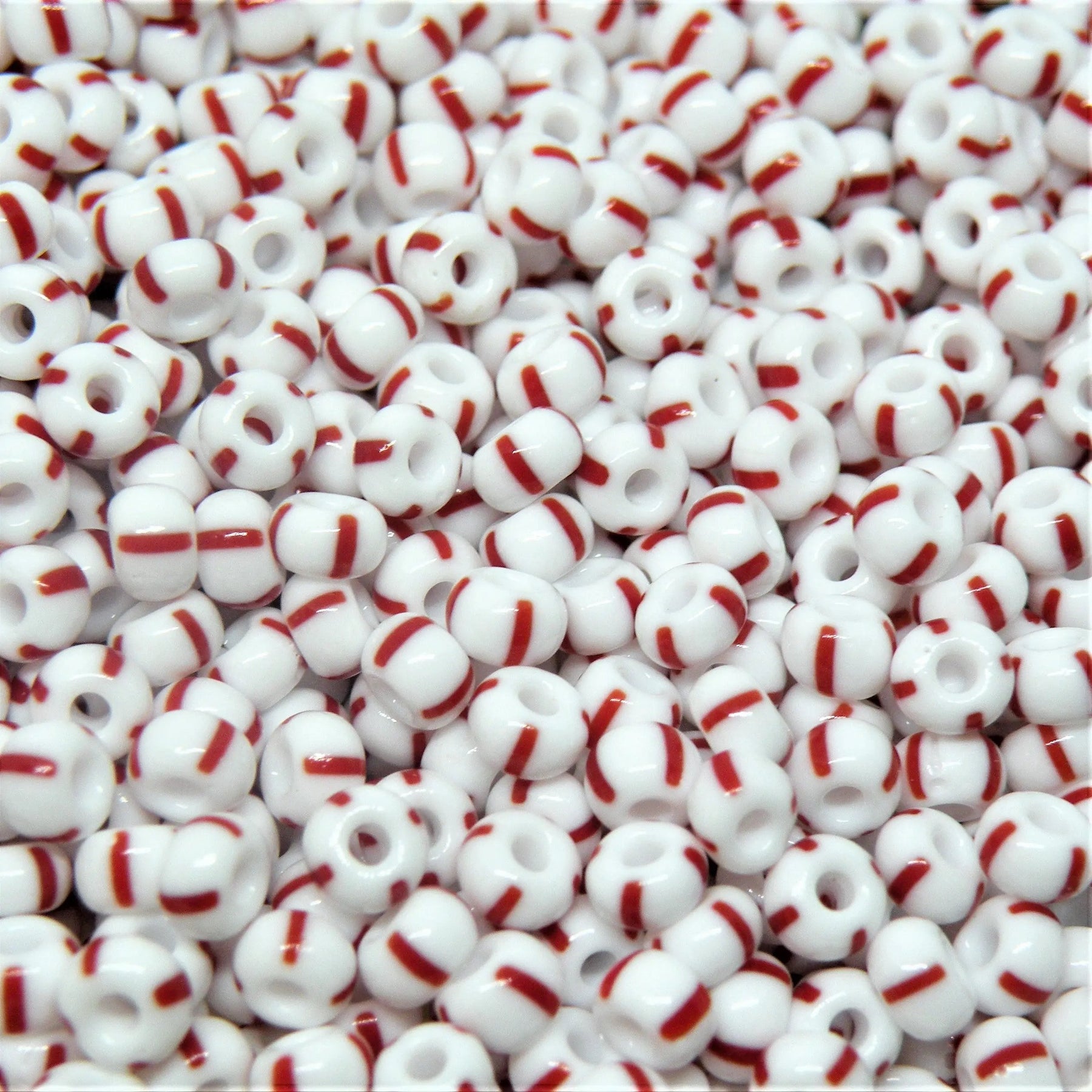 Gestreifte Glasperlen, preciosa, weiß/4 rote Streifen, große Einkäufe