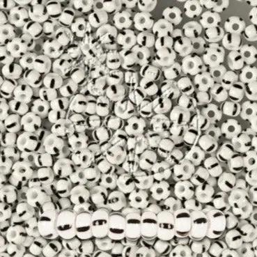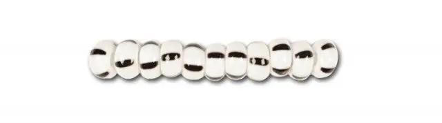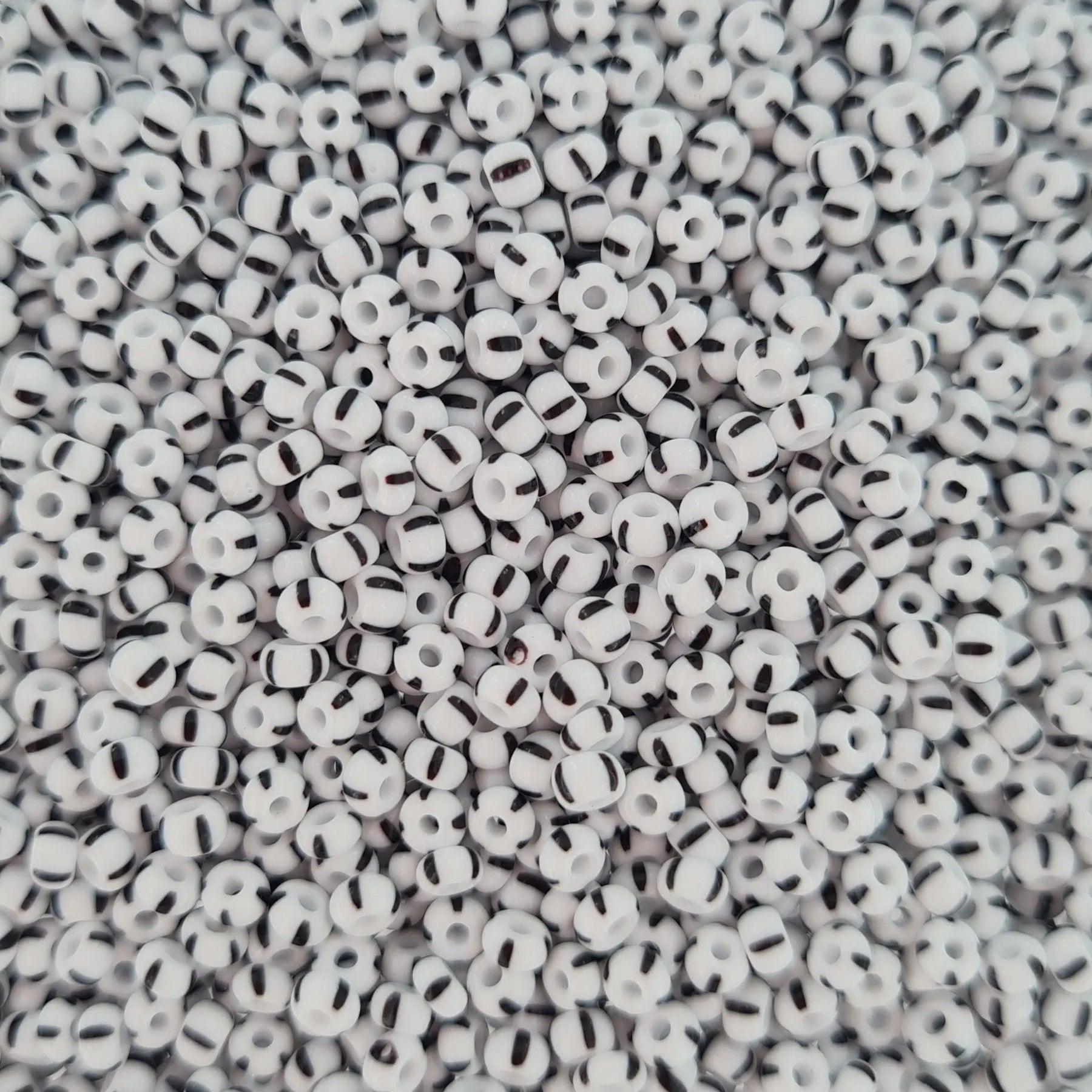 Kleine weiße Glasperlen mit vier schwarzen Streifen.