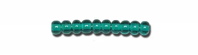 Blau -grün transparente kleine Glasperlen mit weißem Futter.
