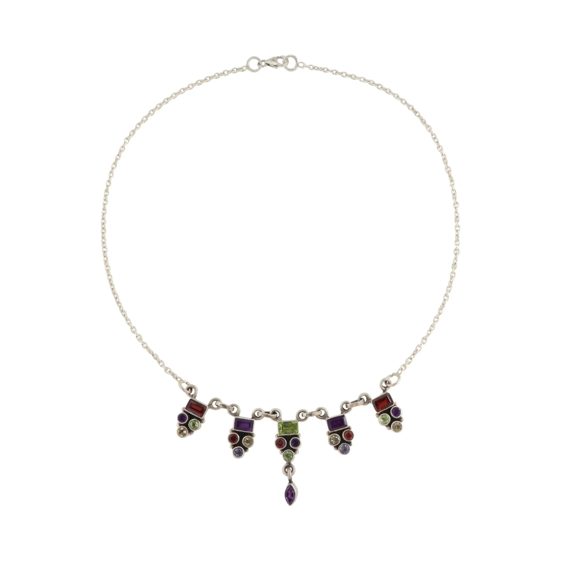 Erleben Sie die zeitlose Eleganz mit unserer Ankerketten -Halskette, die das beste Sterlingsilber mit einer atemberaubenden Sammlung facettierter Edelsteine kombiniert. Jede Halskette ist ein Meisterwerk der Handwerkskunst, das die rohe Schönheit von Bergkristallen, Iolit, Granate, Peridot, Amethyst und Citrin hervorhebt. Diese Edelsteine werden sorgfältig ausgewählt und facettiert, um ihre natürliche Klarheit und ihr Glanz zu maximieren und ein bezaubernder Licht und Farbspiel zu erzeugen, das die Aufmerksamkeit auf sich zieht.