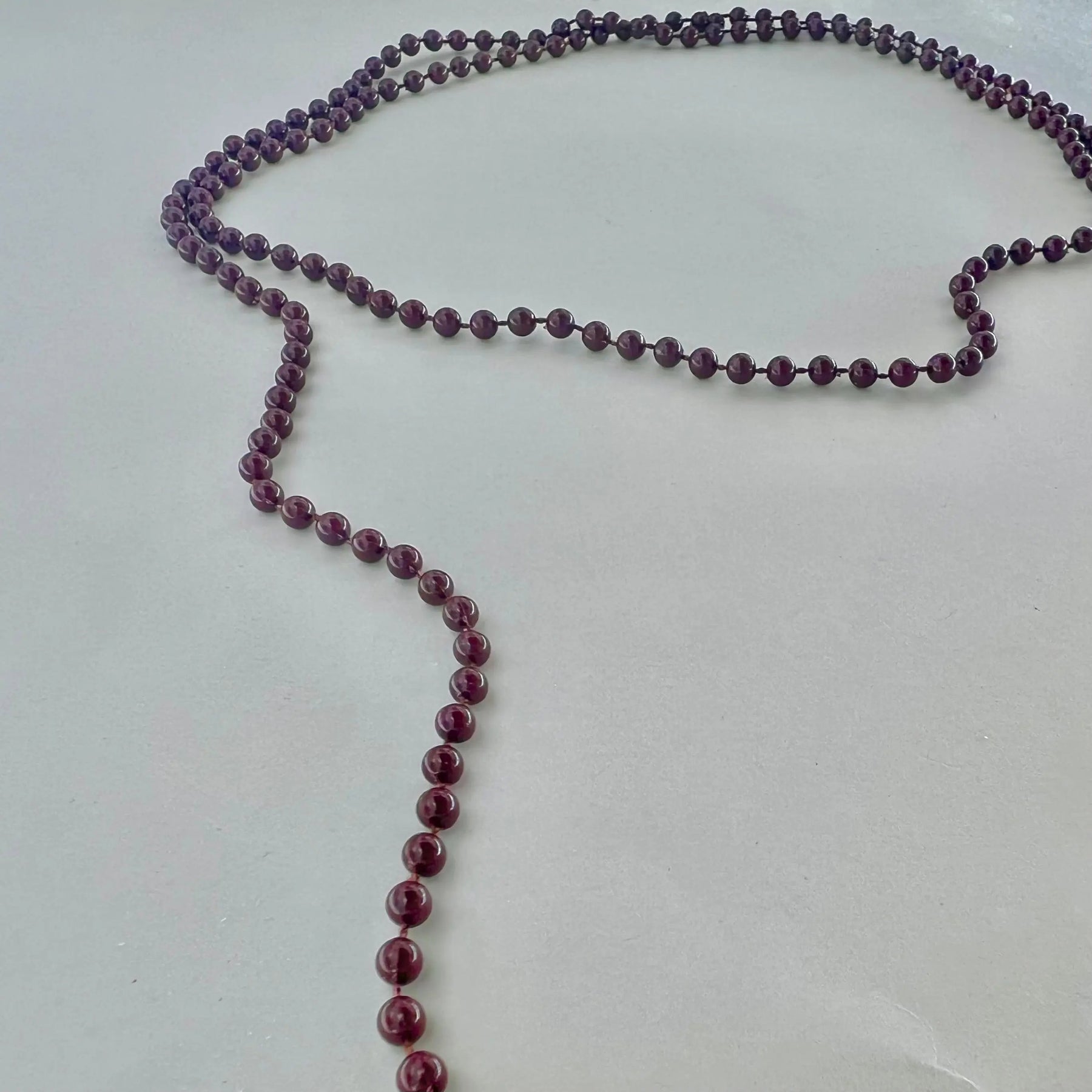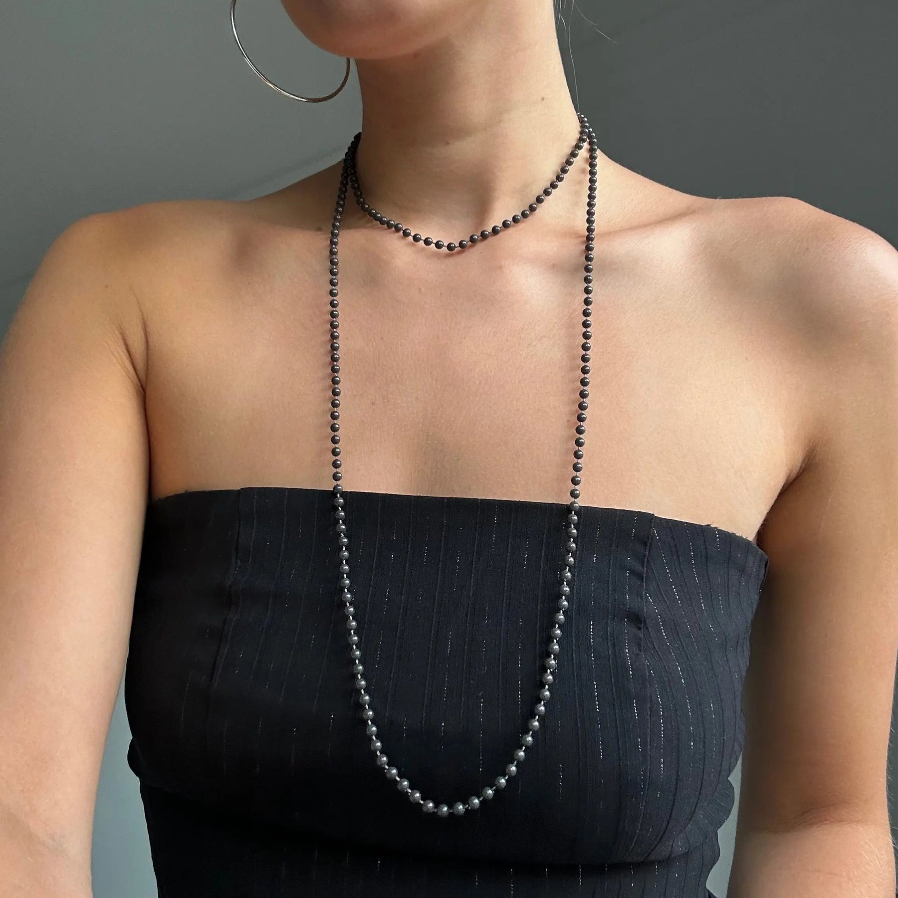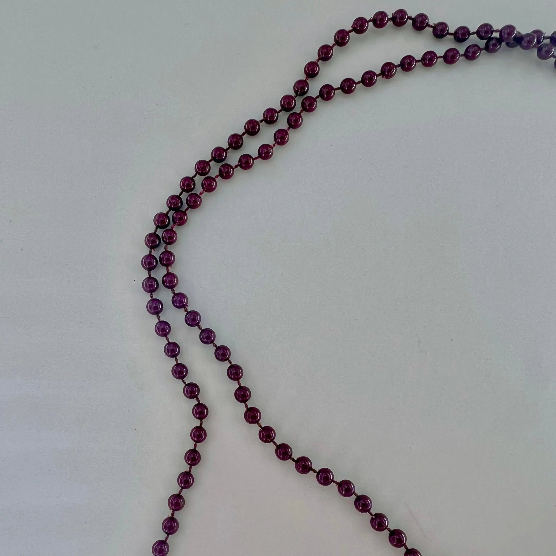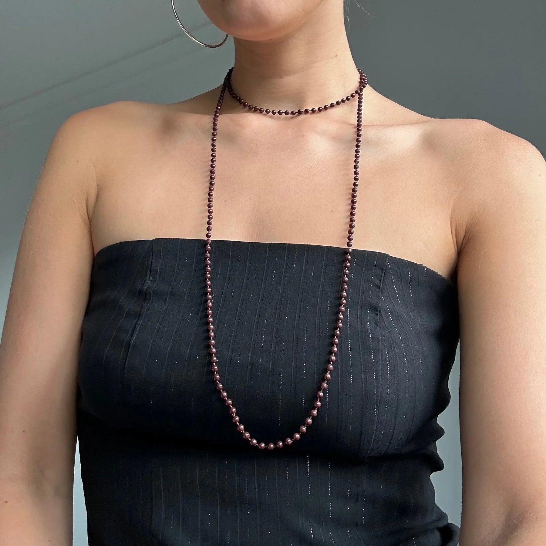 Fügen Sie Ihrer Schmuckkollektion mit unserer schönen langen Plastik -Perlenkette einen Hauch farbenfroher Eleganz hinzu. Diese Halskette misst 116 cm und ist mit kleinen Perlen von 4 mm in tiefen Schatten geschmückt, was sie zu einer perfekten Wahl für jede modische Person macht.