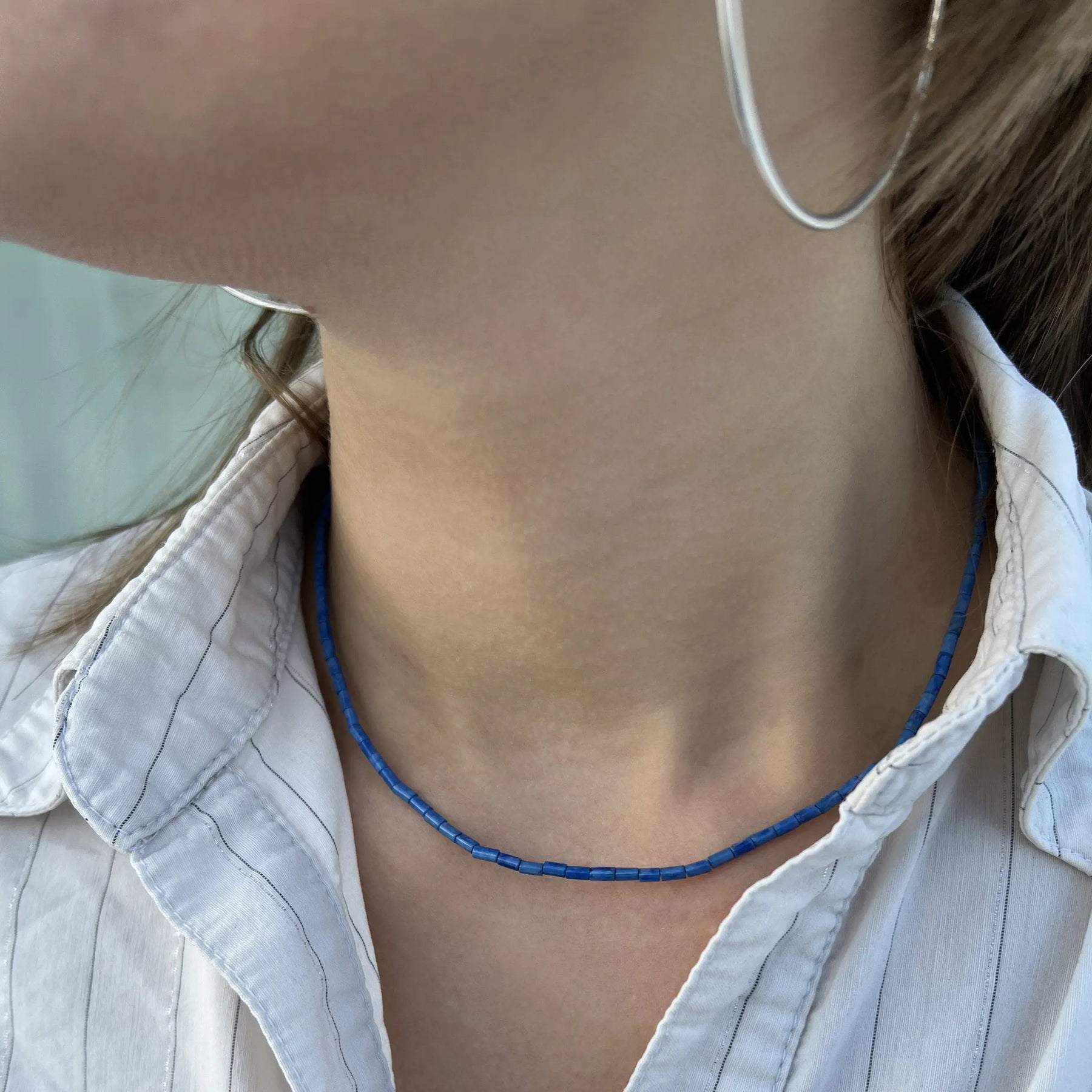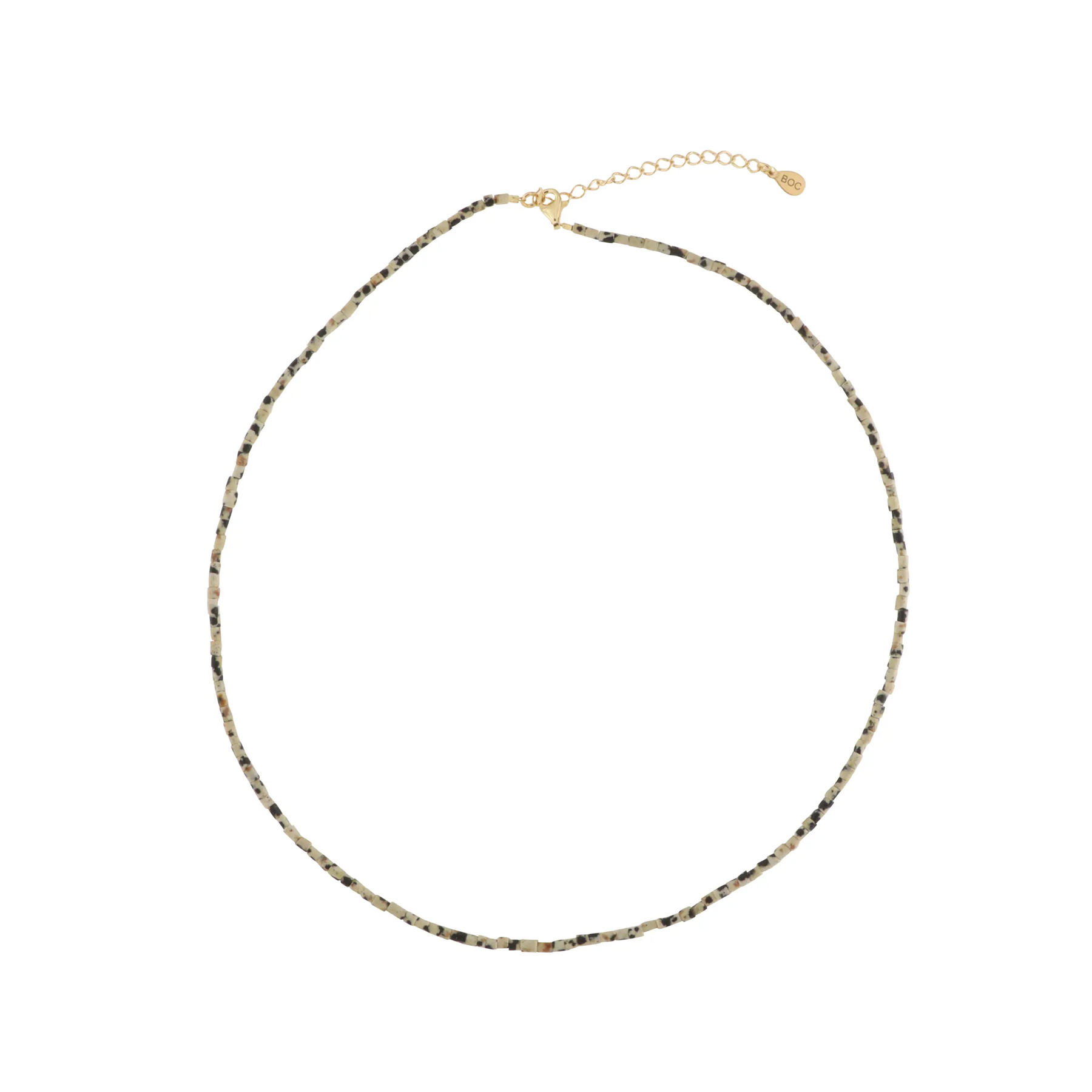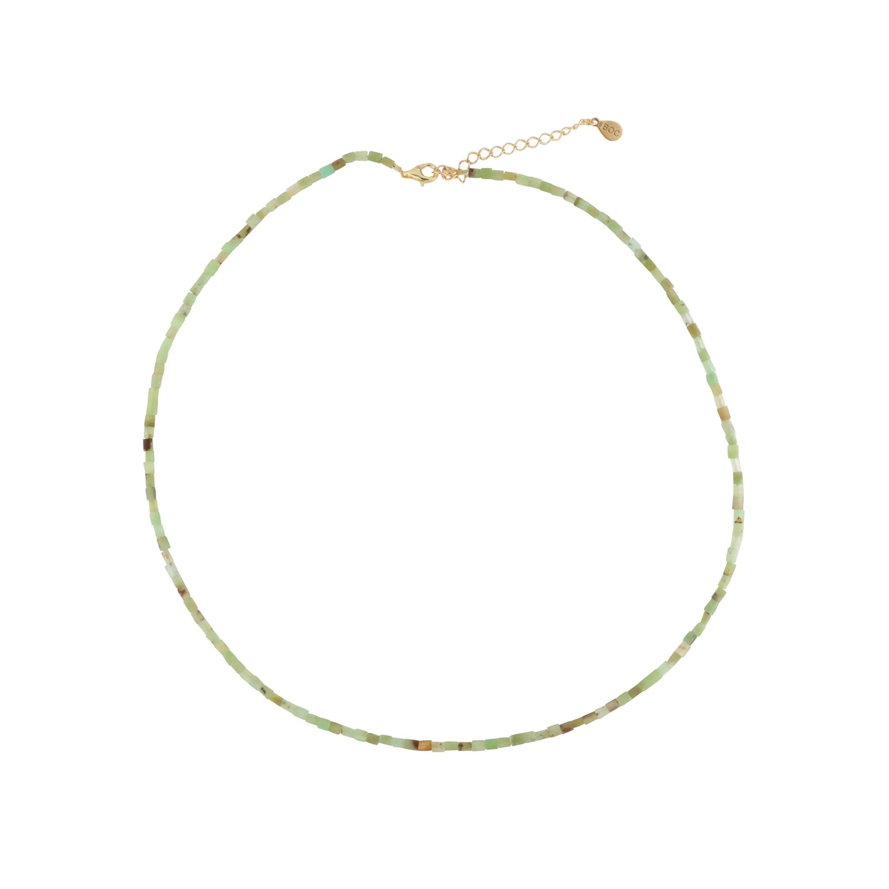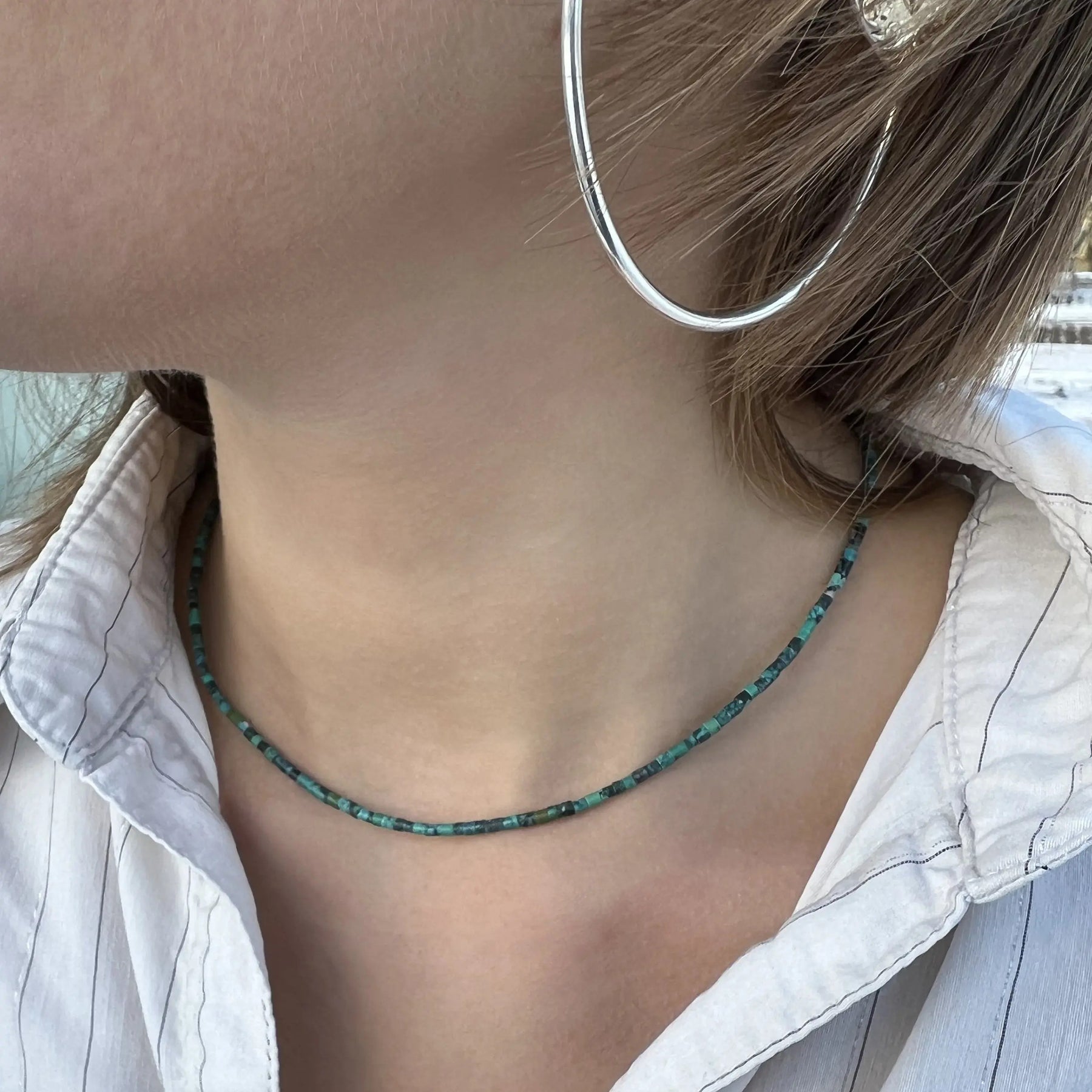 Verwöhnen Sie sich mit einer eleganten Halskette, die eine schöne Kombination von Pfeifenperlen in verschiedenen Edelsteinen darstellt, darunter Sodalit, Rhodonit, Chrysopras, Dalmatins Jaspis, Snowflake Obsidian und Türkis. Jede Halskette ist sorgfältig mit einem Schloss und einer Kettenverlängerung von Sterlingsilber oder vergoldetem Sterlingsilber ausgestattet, wodurch ein luxuriöses Finish und die Gewährleistung der Haltbarkeit verleiht.