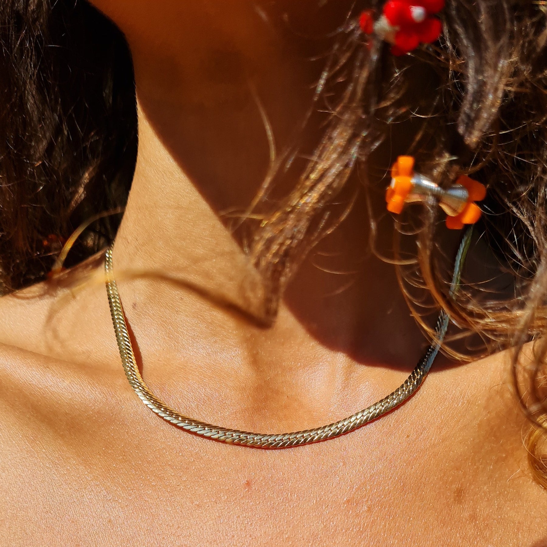 Halskette, Fischgrätenkette, vergoldetes Messing, 40-50 cm/4 mm