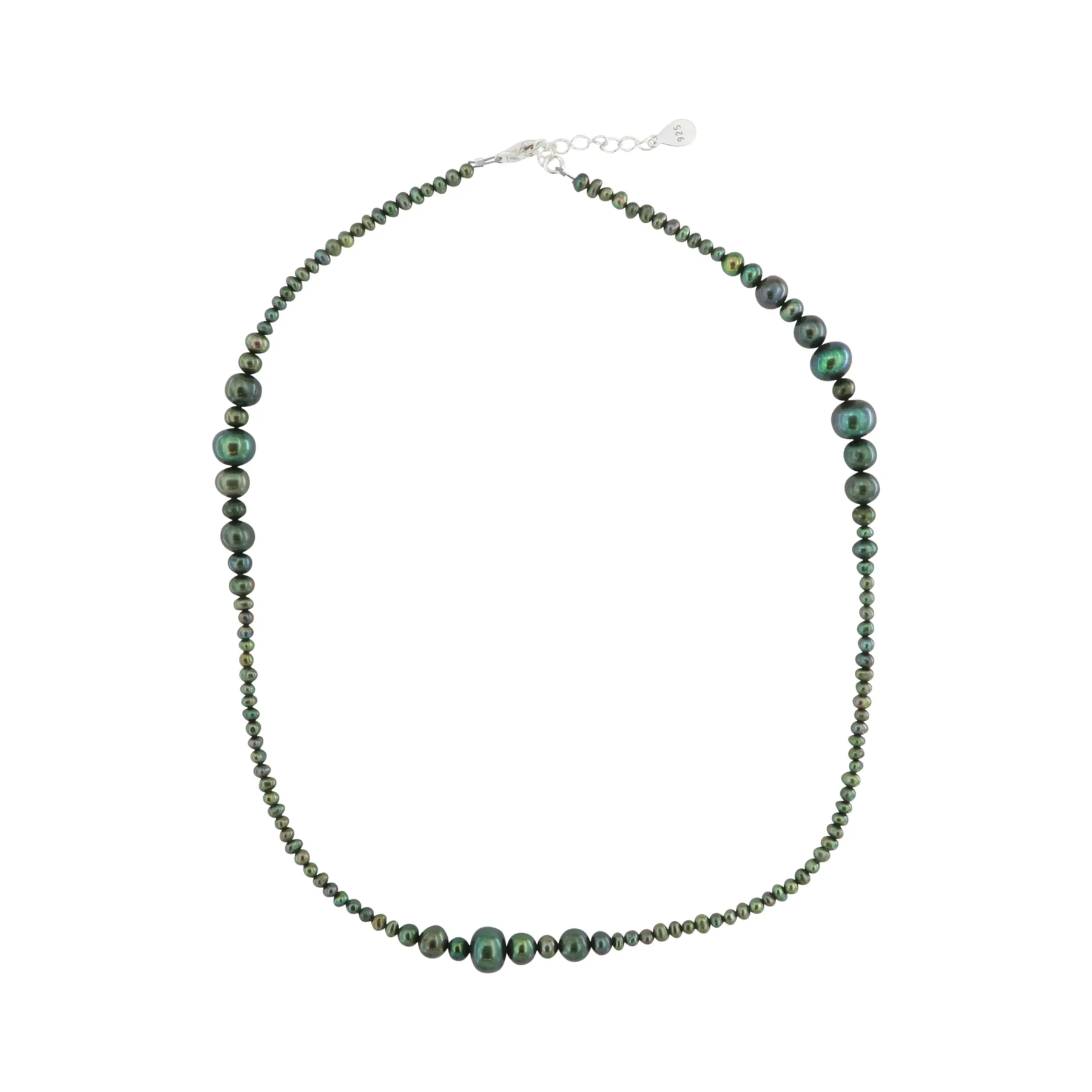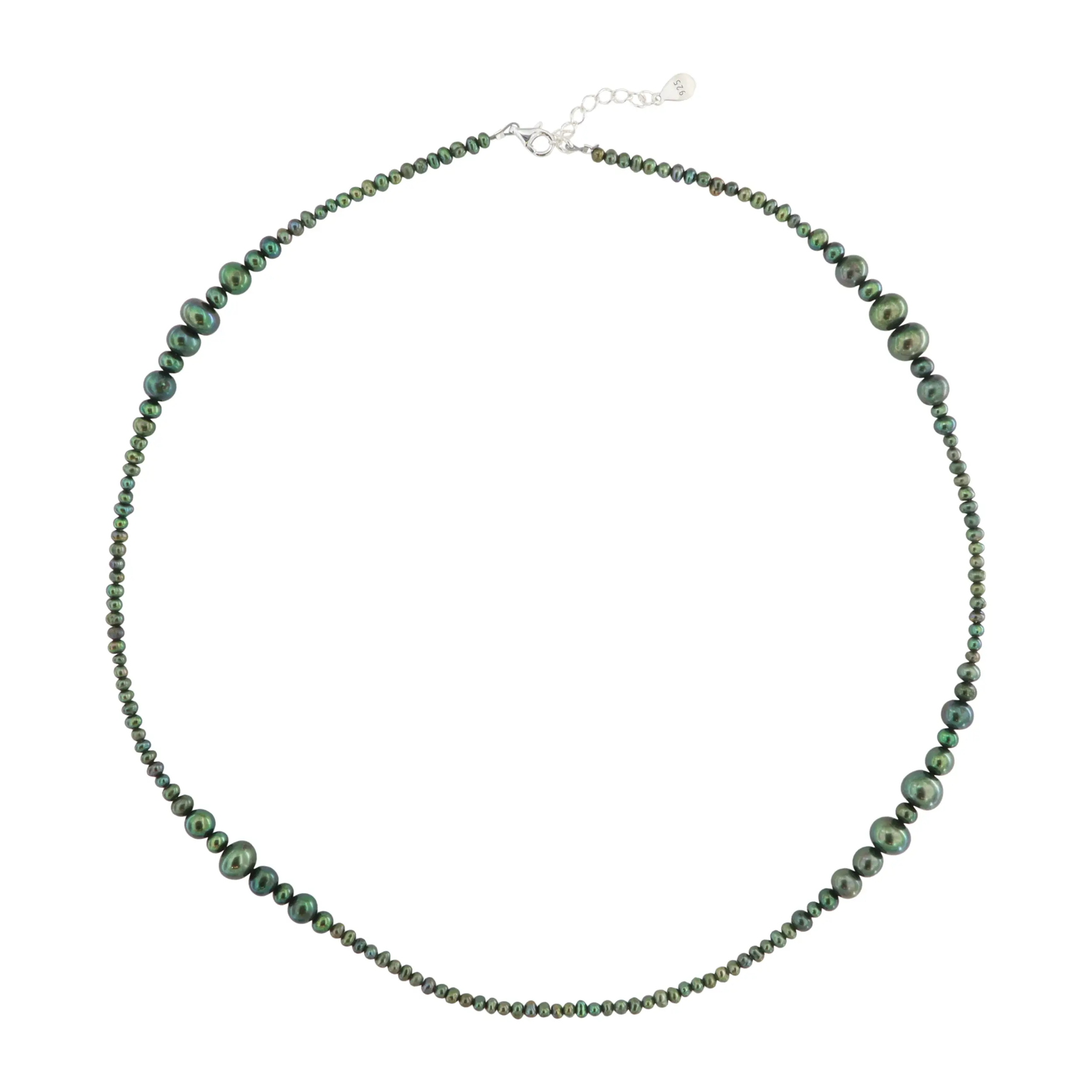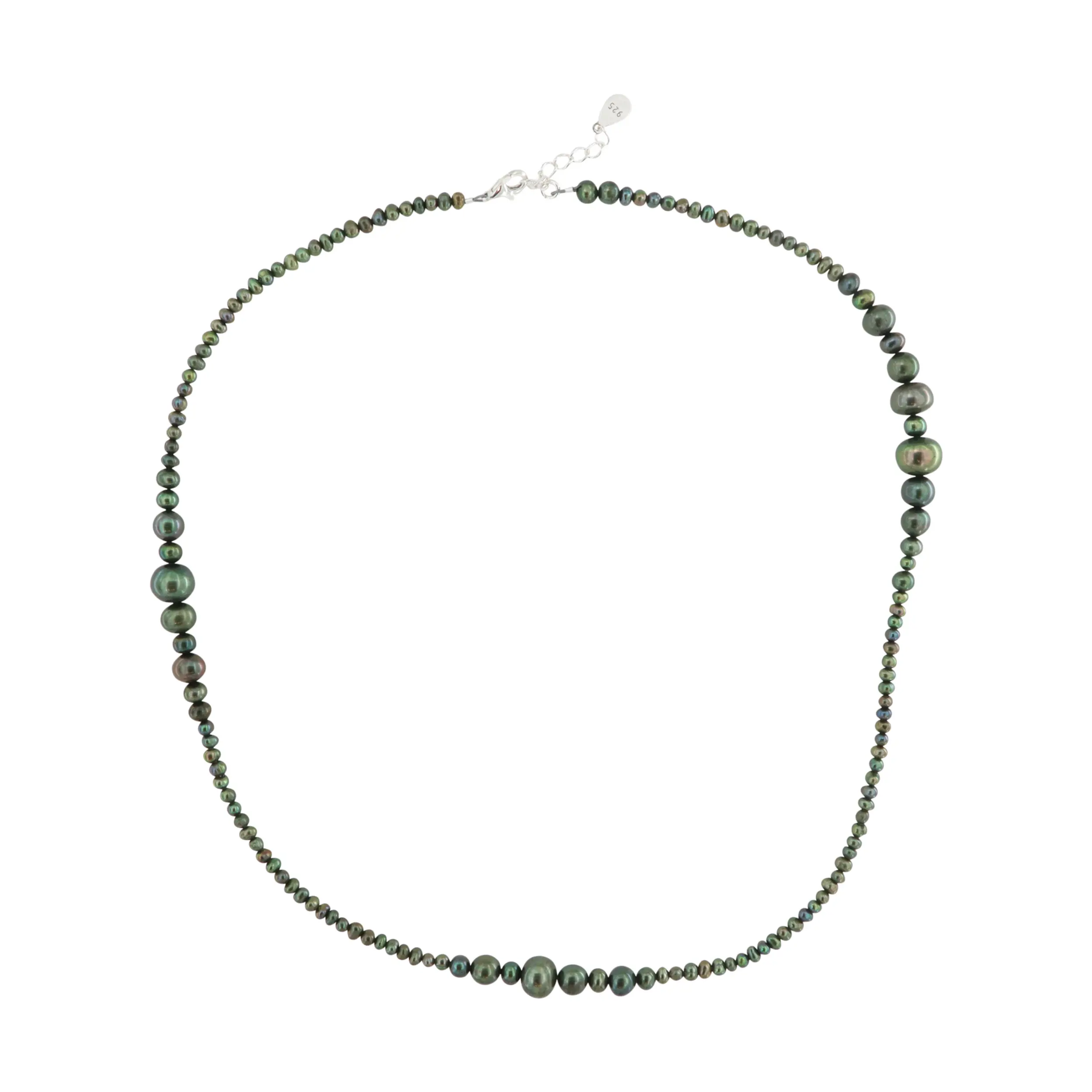Halskette, grüne Süßwasserperlen, Sterlingsilber, 40-50 cm