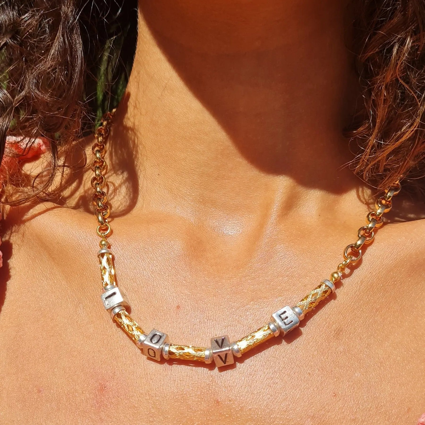 Halskette, L O V E, goldplattiertes Messing, 45 cm/6,5 mm