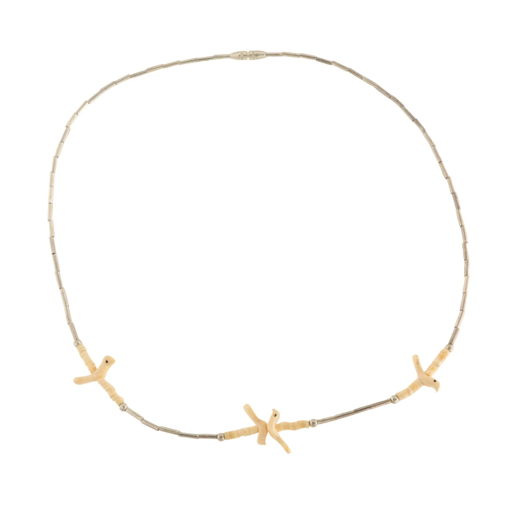 3. Rondel -Beinperlen und Vögel Halskette: Vermessung von 42 cm ist diese Variante einzigartig mit runden Beinperlen und kleinen Vögeln, die der Halskette eine spielerische und ethnische Note verleihen.