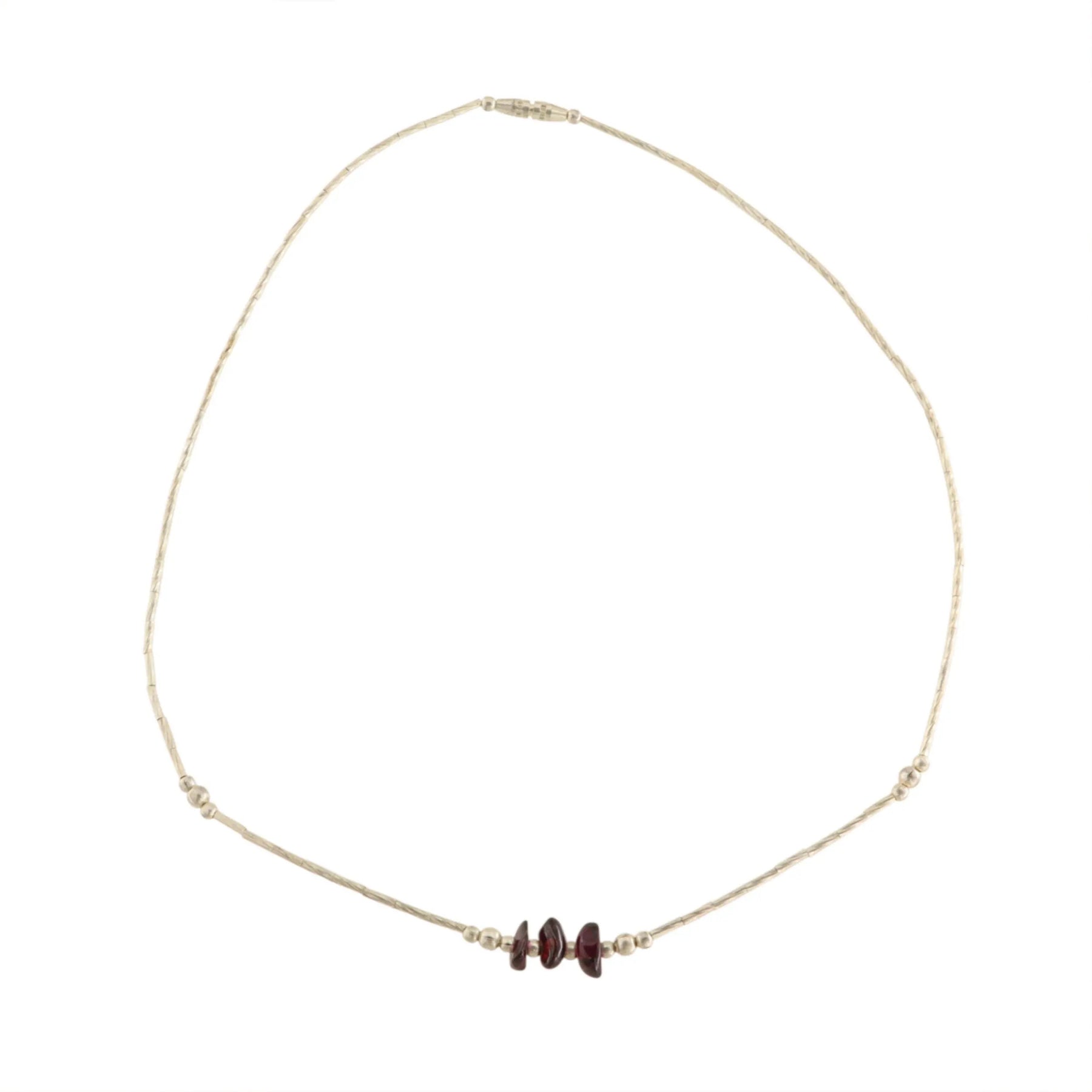 1. Granatkette: Diese Halskette ist 40 cm lang und ist mit tiefem roten Granatapfelstein geschmückt, der für ihre Schönheit und Tiefe bekannt ist.