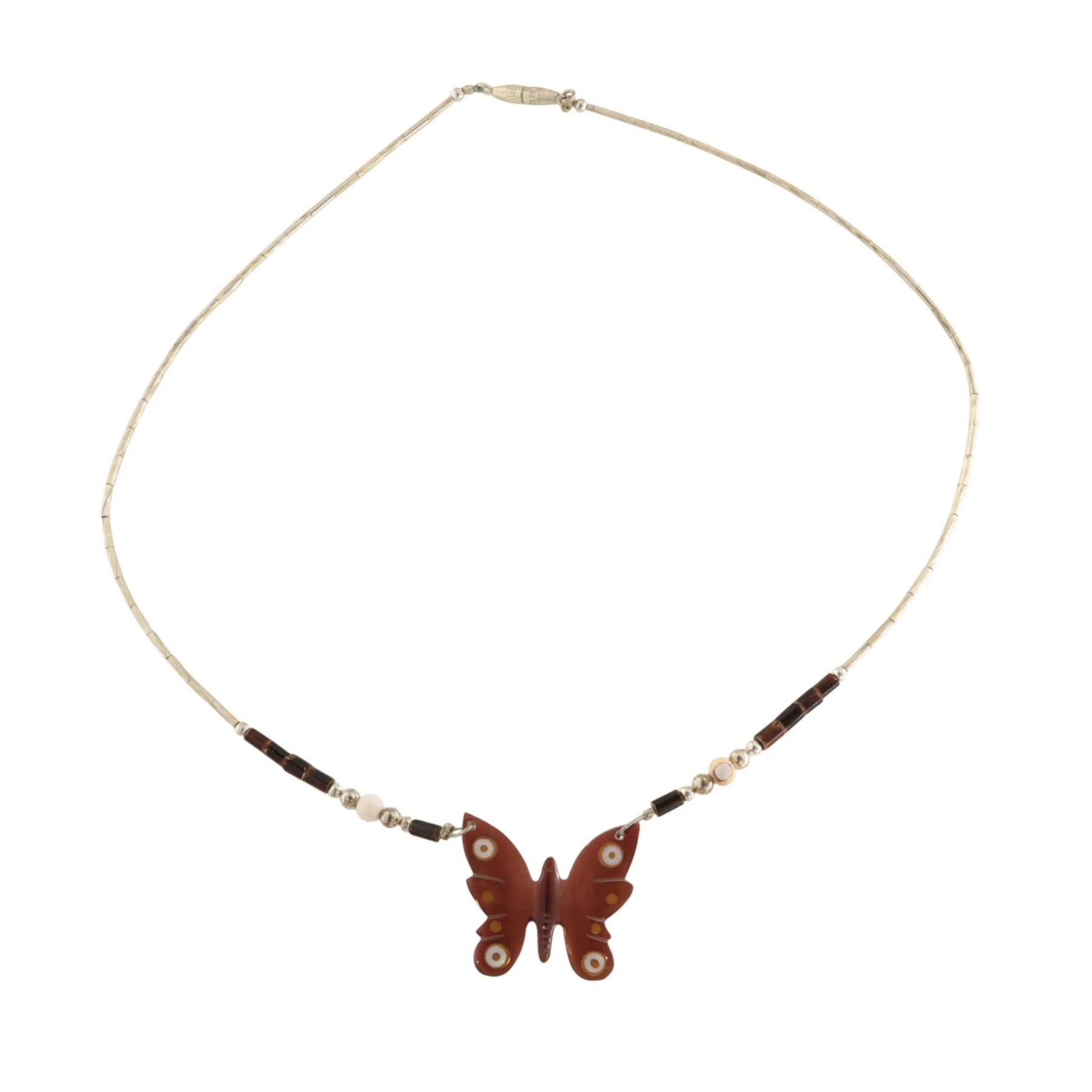 2. Braune Steine ​​und Schmetterlinge Anhängerkette: Mit einer Länge von 39 cm kombiniert diese Halskette ästhetisch ansprechendem braunem Stein mit einem zarten Schmetterlingenanhänger.