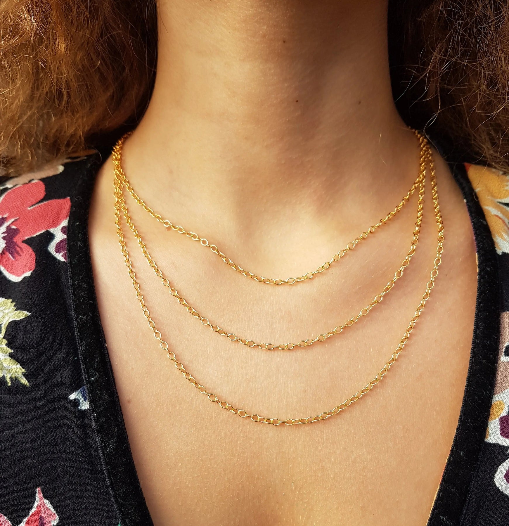 Anzeigen des Modells: Auf unserem Modell beträgt die Längenkette 45 cm, 50 cm und 55 cm, sodass Sie eine Vorstellung davon bekommen, wie sie zu unterschiedlichem Ausschnitt und Outfits passt.
