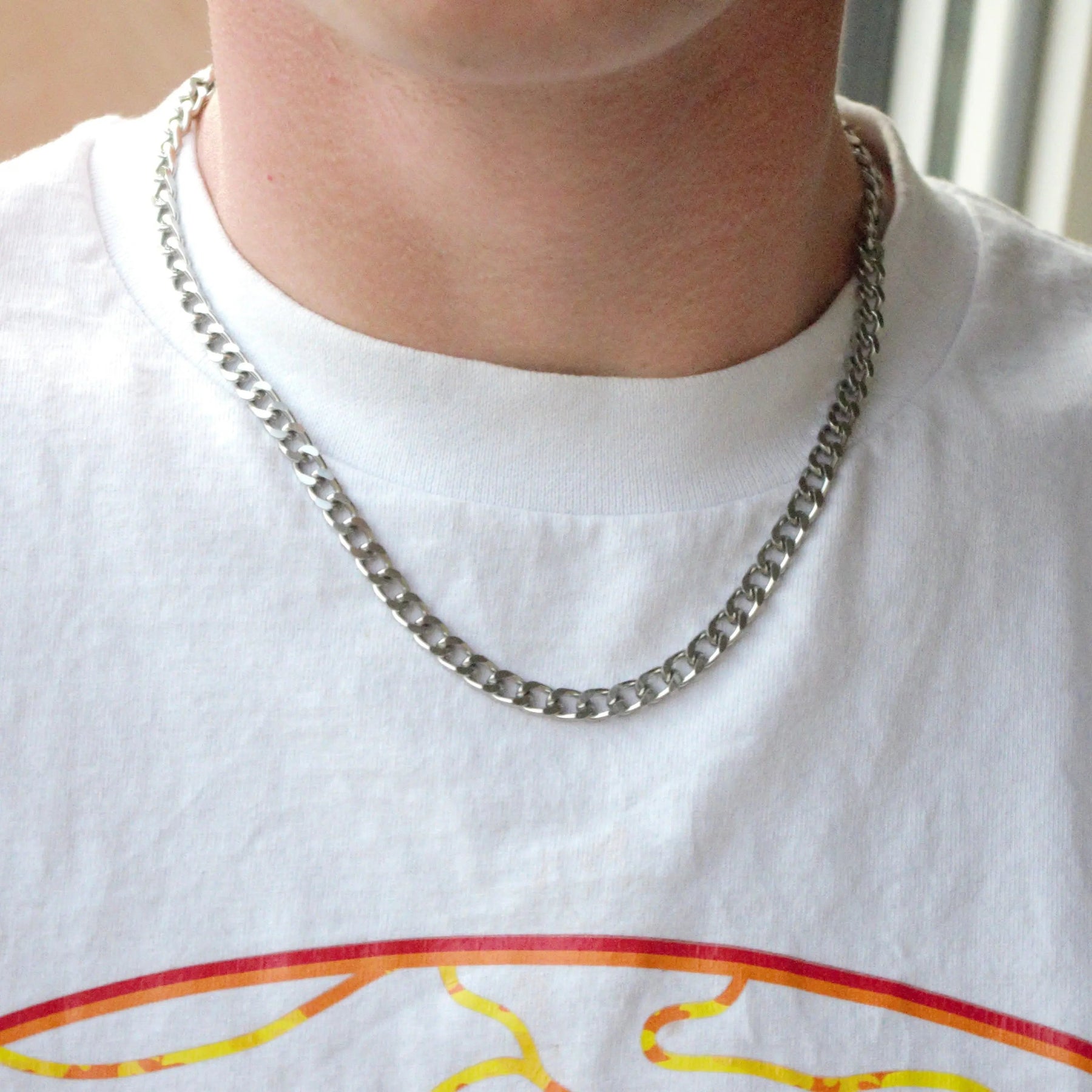 Halskette, klobige Pfannenfacettenkette, Stahl, 40-60 cm/5,5 mm