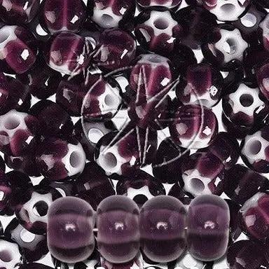 Dunkelviolette Glasperle mit einem inneren weißen Stern.