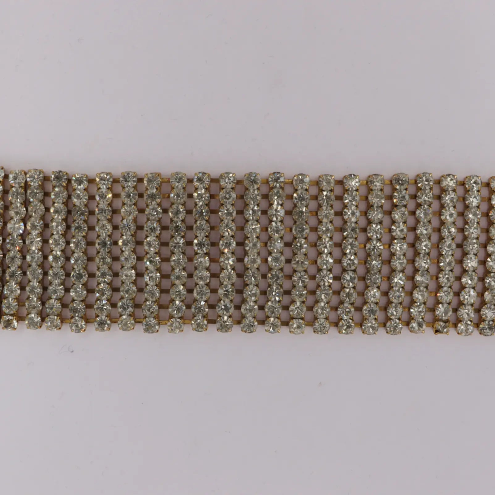 Dette iøjnefaldende mavebælte er designet med flere rækker samlet af klare similisten, som giver et glamourøst og funklende udtryk. De tætsiddende sten skaber et bredt og markant look, der fremhæver taljen og tilfører et eksklusivt touch til både festlige outfits og styling over kjoler, toppe eller badetøj.
