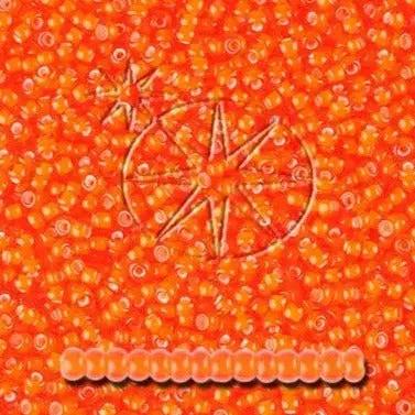 Kleine orange transparente Glasperlen mit weißem Futter.