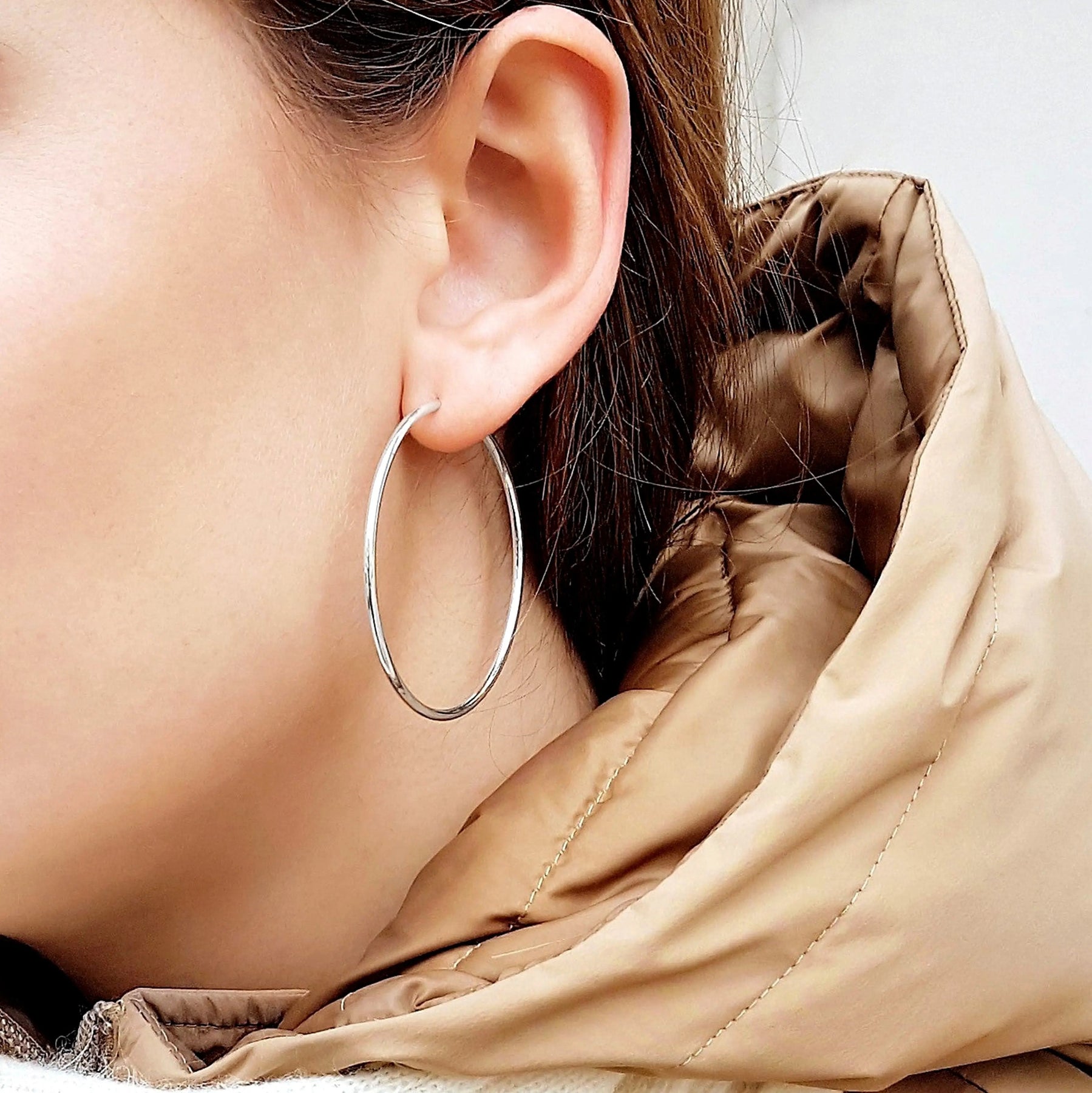 Ohrringe, Reifen, 50 mm, vergoldetes und Sterlingsilber