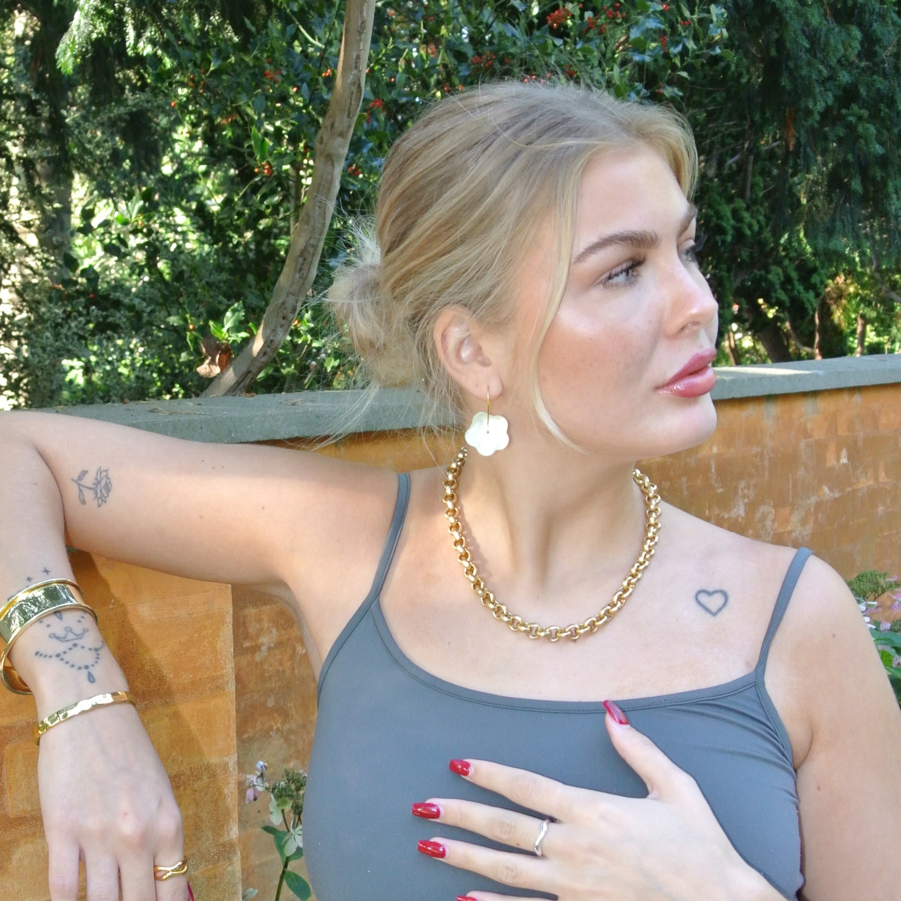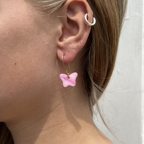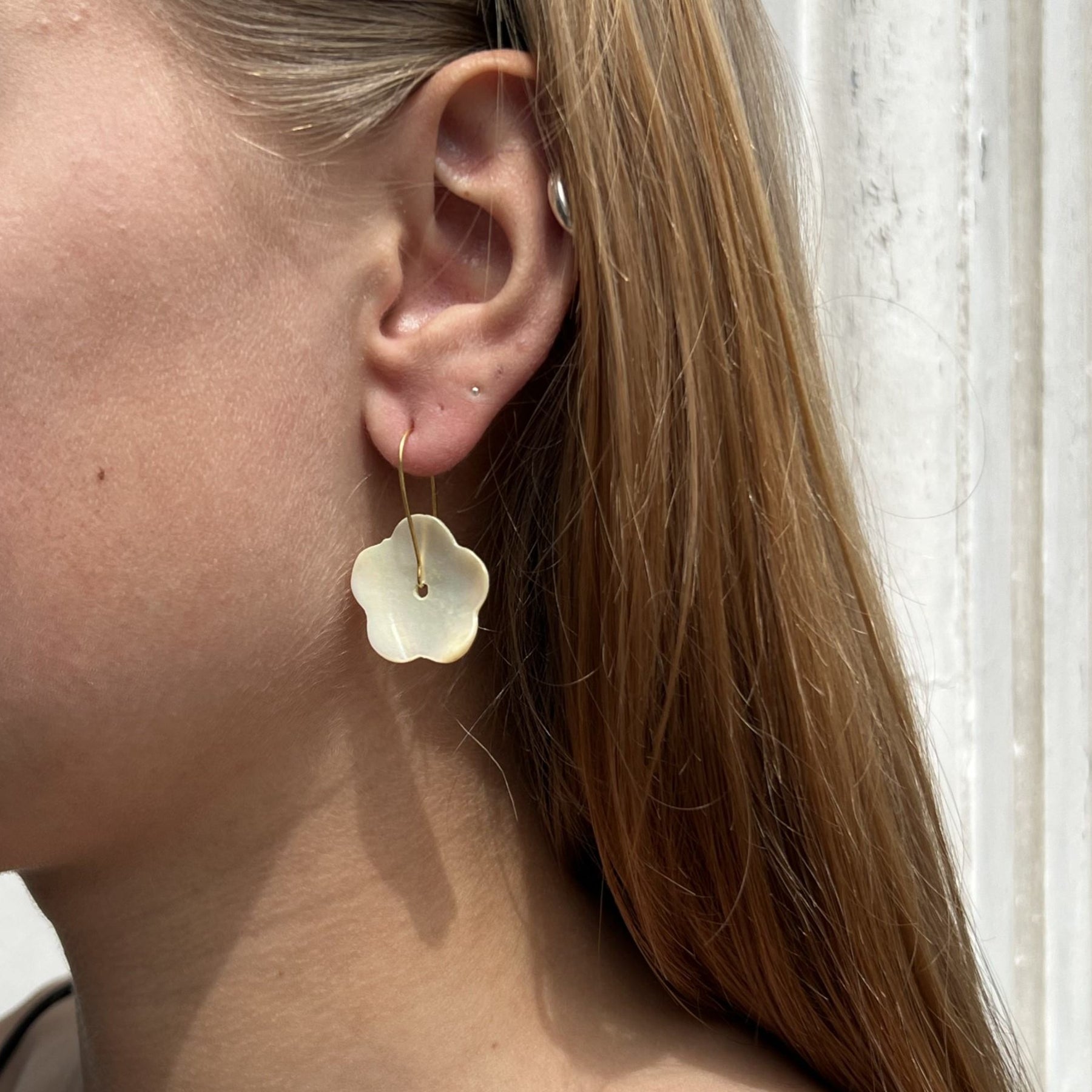 Erleben Sie die einzigartige Schönheit und Vielseitigkeit unserer Ohrringe, die mit natürlichen Muscheln elegant vergoldete Messing kombinieren. Diese Ohrringe präsentieren eine Reihe von Augenanhänger, darunter Blumen, Schmetterlinge, Herzen und runde Formen, die Ihrem Stil jeweils ein farbenfrohes und spielerisches Element verleihen.