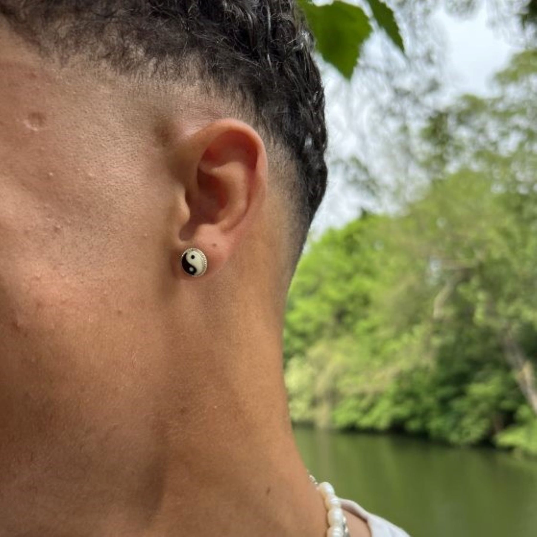 Erleben Sie unsere schönen Ohrhörer mit Yin- und Yang -Motiv, die gerahmte Onyx und Beine in Sterlingsilber elegant kombinieren. Diese einzigartigen Ohrringe verleihen jedem Kleid einen raffinierten Touch und können allein oder in Kombination mit anderen unserer großen Ohrringe getragen werden, um einen persönlichen Stil zu schaffen.