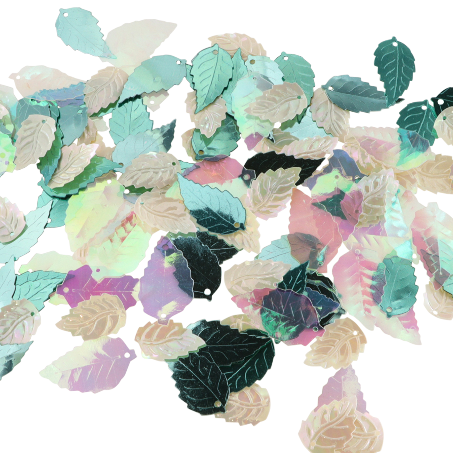 A Bunt Mischen von Blatt -Shaped Pailletten, Dort bringt Natur Formen Ind In dein Kreativ Projekte. Die Pailletten variiert In Boote Größe Und Farbe Und Ist Perfekt Zu DIYSchmuck, Stickerei, Garnieren Und Dekorationen mit A Legende, Botanisch Twist.