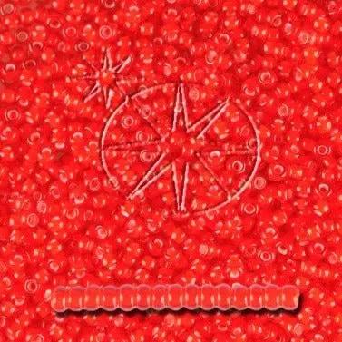 Transparente rote kleine Glasperlen mit weißem Futter.